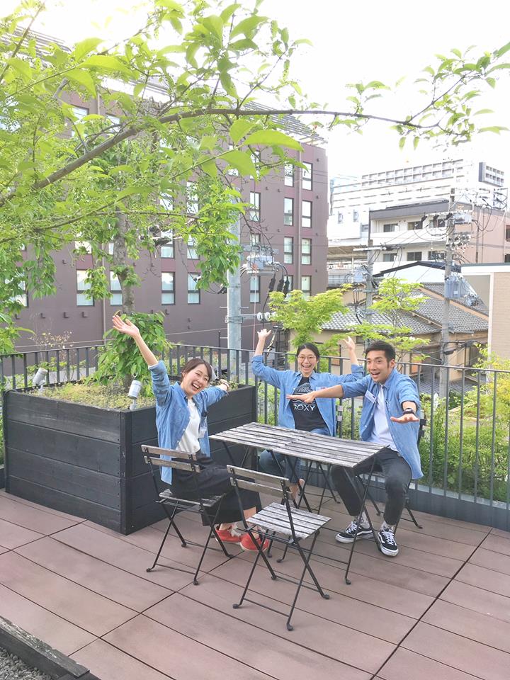 ピースホステル京都のテラスでも、美しい新緑を楽しむことができます。