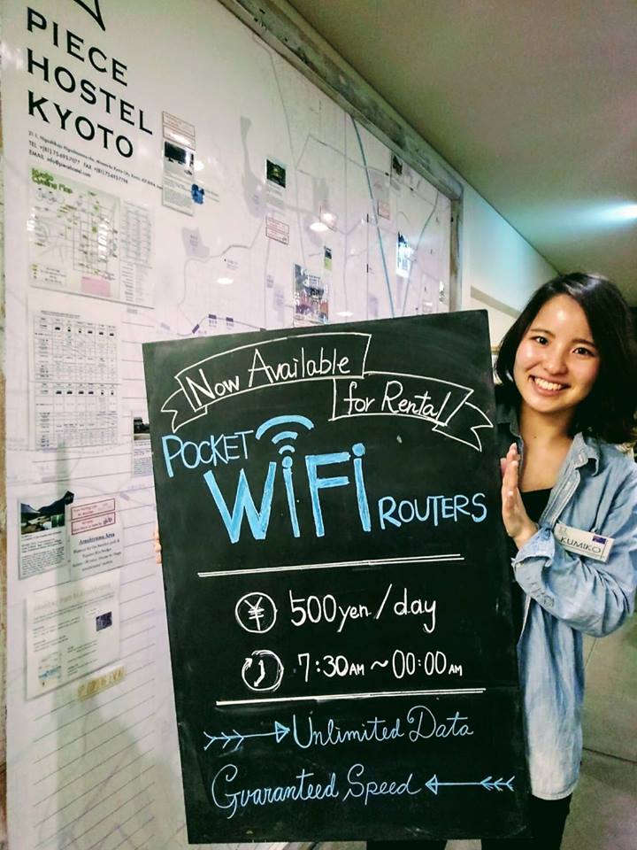 京都ではまだまだ無料Wi-Fiサービスが広まらない中、ピースホステルでは、主に海外ゲスト向けにポケットWi-Fiレンタルサービスを開始します!まずは一か月のお試し期間で、ゲストの皆さまの反応をお伺いする予定です。一日500円で借りることのできる、データ制限なしの高速通信Wi-Fiです。