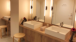 Shower rooms are located in the basement. All shower rooms have individual dressing rooms. We have 5 female-only and 7 gender-neutral shower rooms. Shampoo, conditioner, body soap, and bath towels are provided free of charge.